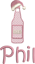 A Handmade Personalised Embroidered Christmas Stocking in Ivory with Pink Tone Thread.